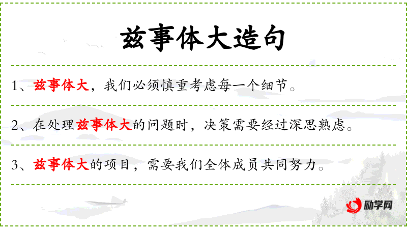 - 文化背景:成语“兹事体大”和“掉以轻心”体现了**文化中对重要事务的重视和对轻忽态度的警示。