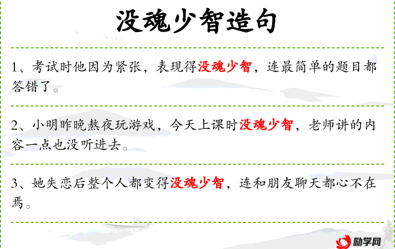 6. 【没魂少智】 - 智:智慧。形容失魂落魄的样子。