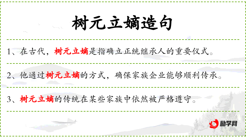 1. 【树元立嫡】 - 指立嫡长子为储君。