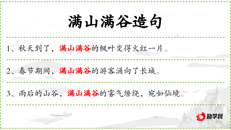 4. 【满山满谷】 - 到处都是。形容非常多。