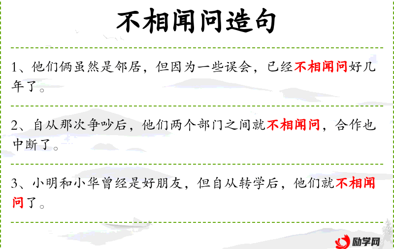 - 不相闻问:互不联系,不关心对方的情况。