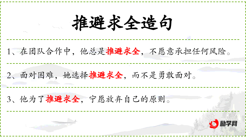 - 推避求全:指在决策时过于谨慎,追求完美,避免风险。