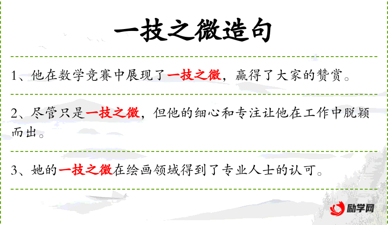 1. 【一技之微】 - 技:技能,本领。指有某种技能或特长。