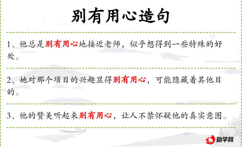 在实际交流中,这句话可能用于描述某人的行为动机,暗示其行为可能不单纯或有所图谋。语气的变化(如加重“别有用心地”)可以增强这种暗示。