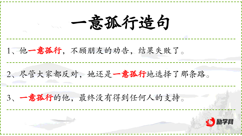 1. 【一意孤行】 - 指不接受别人的劝告,顽固地按照自己的主观想法去做。