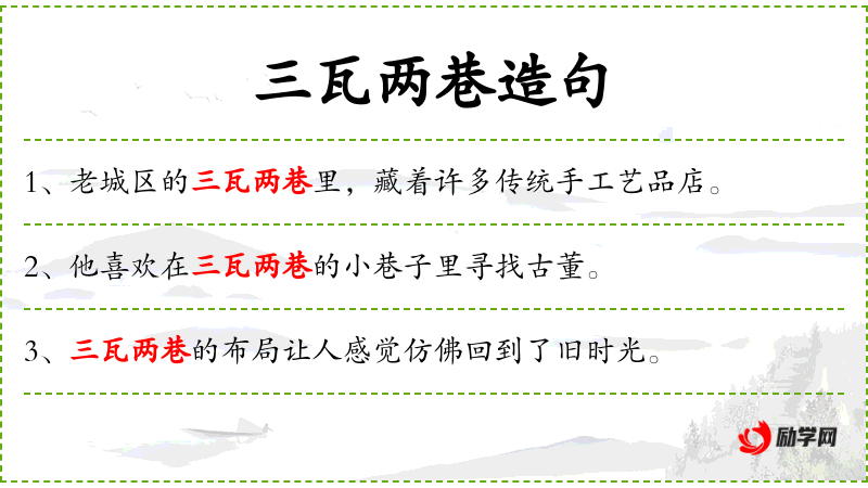 2. 【三瓦两巷】 - 旧指富家子弟寻欢作乐的地方。同“三瓦两舍”。