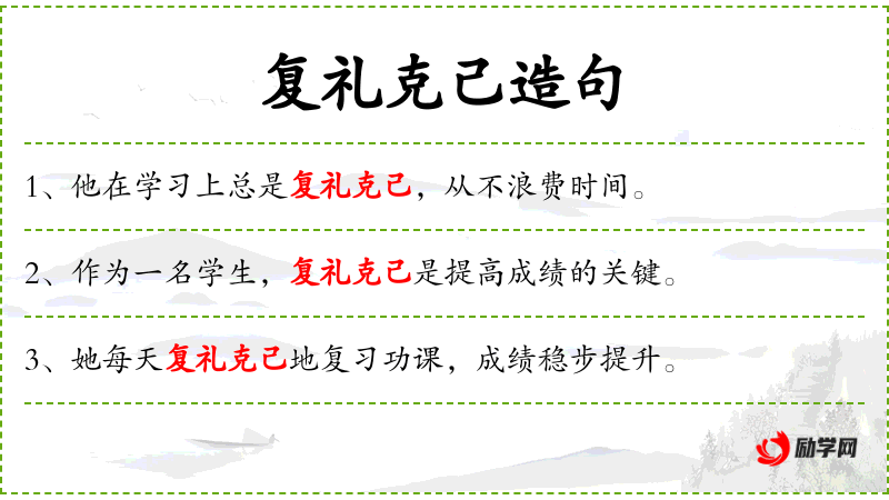句子:“他通过复礼克己,成功克服了学*上的困难。”