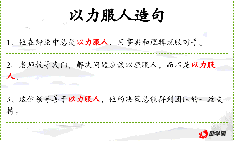 - 以力服人:通过展示自己的能力来说服或影响他人。