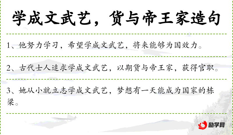 - 货与帝王家:将所学之才贡献给帝王,为朝廷服务。