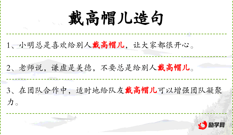 - 主语:“给别人戴高帽儿”