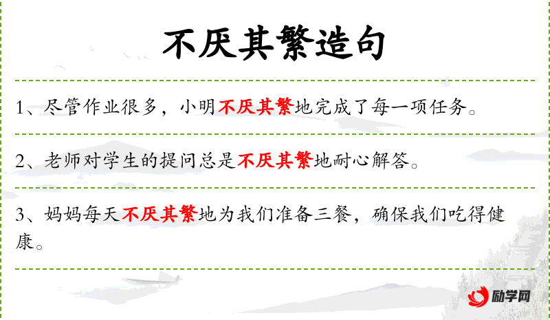 句子:“老师对学生的提问总是不厌其繁地耐心解答。”