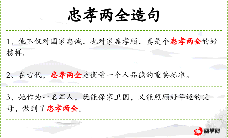 - 忠孝两全:指同时做到忠诚和孝顺,是**传统文化中的重要价值观。