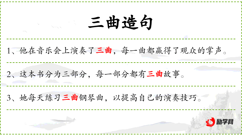 1. 【三曲】 - 古丧礼的一种哀声。谓一举声而三折; 唐长安城北平康里之歌妓聚居区,分一曲﹑二曲﹑中曲,合称三曲。见唐孙棨《北里志.海论三曲中事》; 酒名。曲酒中品级最低的一种。
