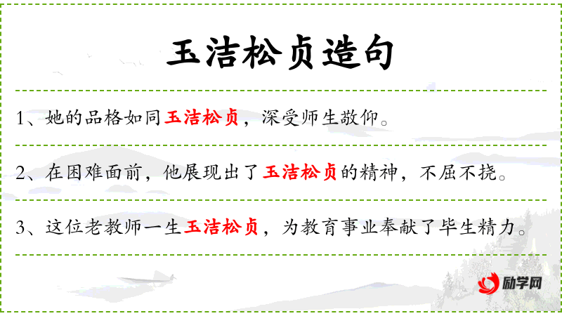 3. 【玉洁松贞】 - 象玉一样洁净,如松一般坚贞。形容品德高尚。