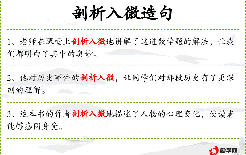 - 剖析入微:形容分析非常细致、深入。