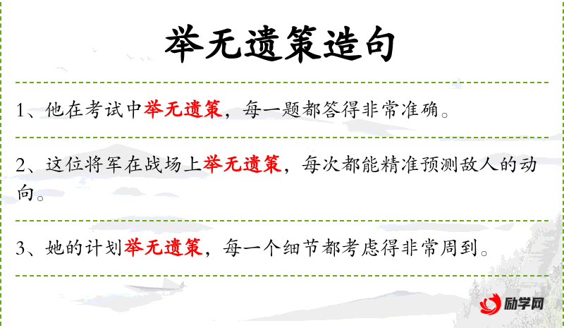 - 举无遗策:形容计划或策略周密,没有遗漏。