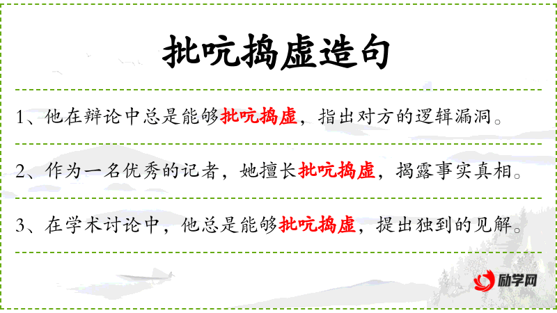 - 批吭捣虚:这个词组可能是指在讨论中指出问题的不实之处或虚浮的部分,帮助大家聚焦于实质问题。