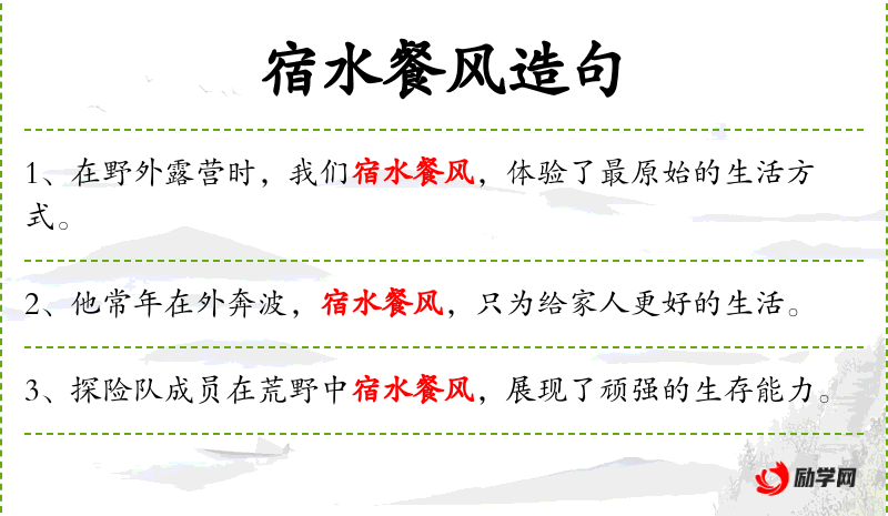 - 宾语:宿水餐风