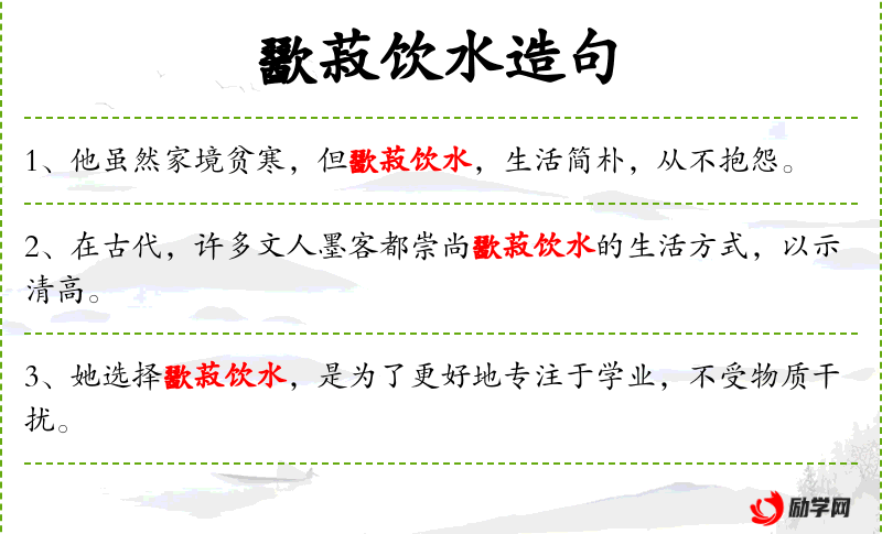 2. 【歠菽饮水】 - 喝豆粥饮白水。比喻生活清苦。