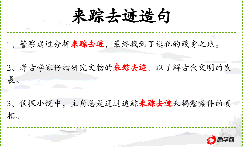 6. 【来踪去迹】 指人的来去行踪。
