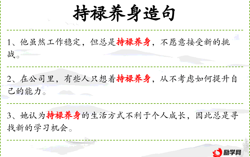 - 持禄养身:保持现状,不寻求改变,以维持稳定的生活状态。