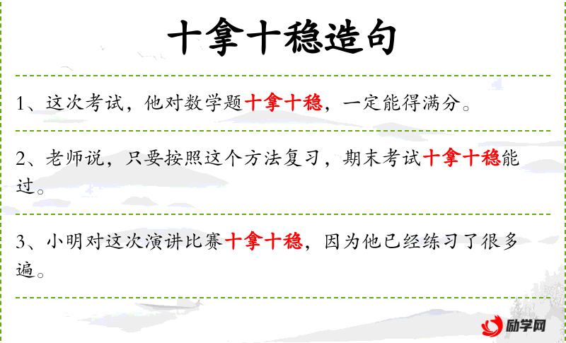 十拿十稳:这个成语在文化中常用,表示非常有把握,类似于英文中的“a sure thing”。它反映了人对于确定性和稳定性的重视。