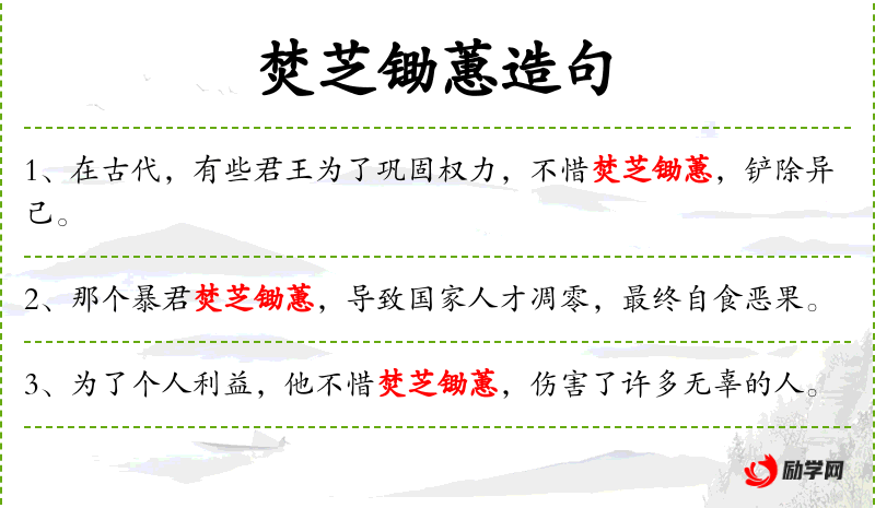 5. 【焚芝锄蕙】 - 芝、蕙:古人视为瑞草。焚毁灵芝,锄掉蕙草。比喻贤者遭受灾祸。