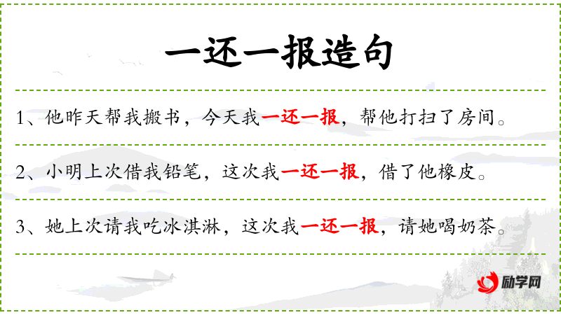 - 使用“一还一报”体现了礼貌和尊重,同时也传达了一种平等和互惠的社交原则。