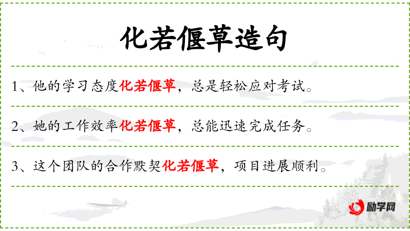 句子:“他的学*态度化若偃草,总是轻松应对考试。”
