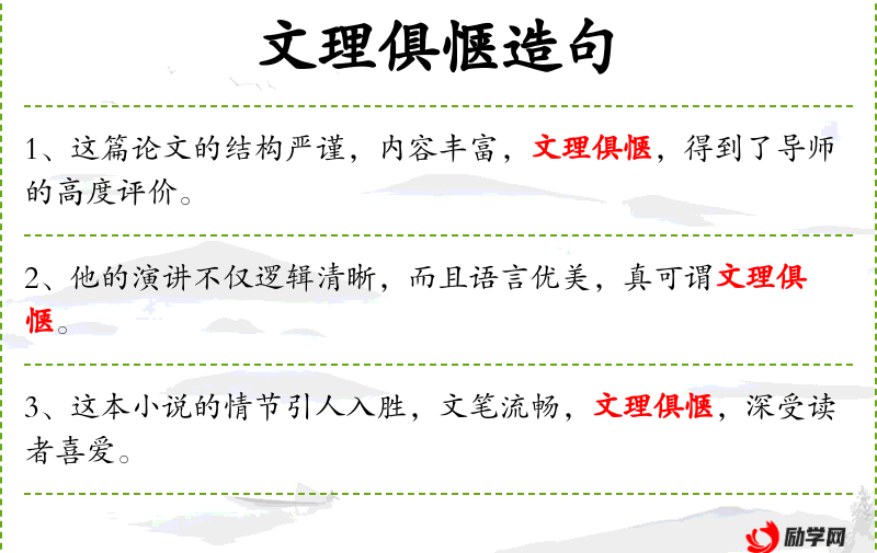 - 文理俱惬:表示文章内容和结构都令人满意。