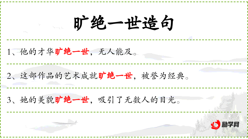 - 旷绝一世:形容非常卓越,无人能及。