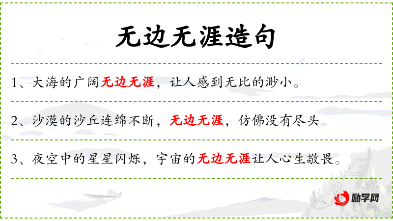 - 无边无涯:形容范围极广,没有边际。