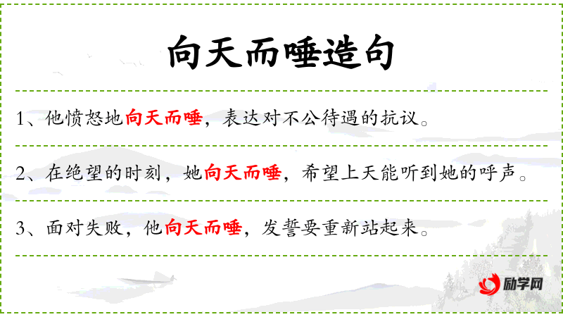 - 宾语:无直接宾语,但隐含的宾语是“上天”