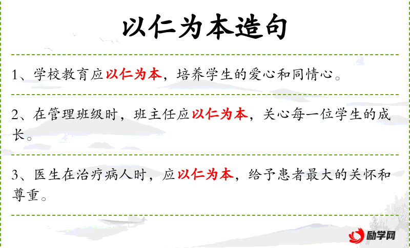 - 以仁为本:强调以仁爱之心为根本。