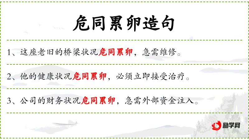 “危同累卵”这个成语源自**古代,形象地描述了极度危险的情况。了解这个成语的来源和历史背景有助于更深刻地理解句子的文化内涵。