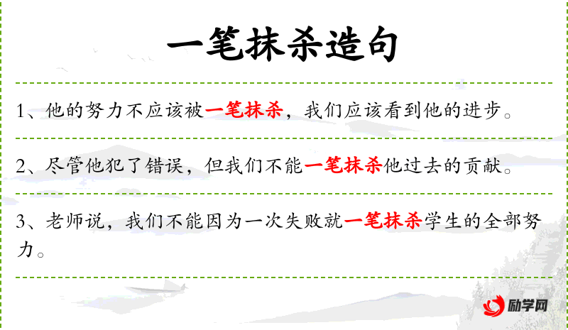1. 【一笔抹杀】 - 比喻轻率地把成绩、优点全部否定。