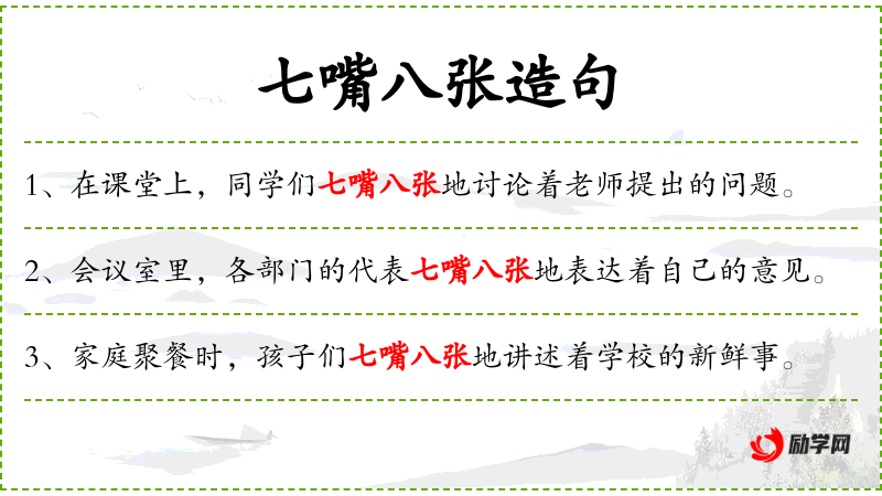 1. 【七嘴八张】 - 形容人多语杂。