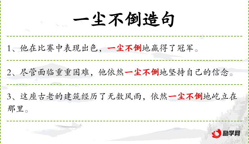- 一尘不倒:这个成语源自**传统文化,形象地描述了某物的稳固性,常用于形容人或组织在面对困难时的坚韧不拔。