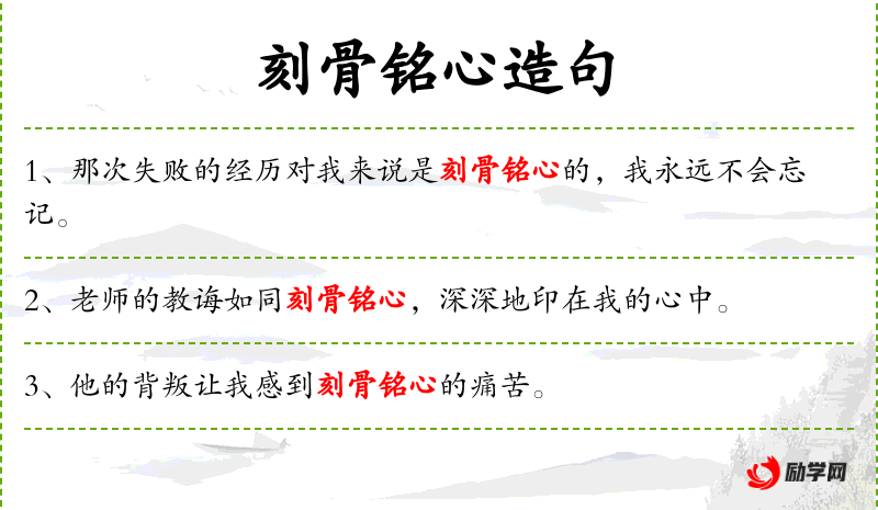 - 刻骨铭心:难以忘怀、铭记于心、深深刻画