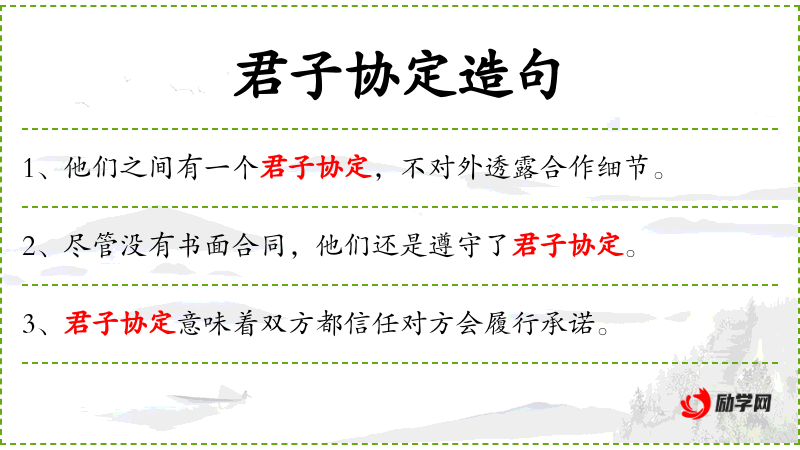 句子:“他们之间有一个君子协定,不对外透露合作细节。”