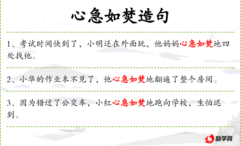 1. 【心急如焚】 心里急得象着了火一样。形容非常着急。