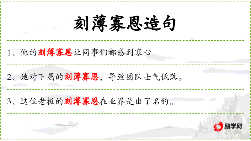- **刻***:形容词,指言语或行为尖酸、不厚道。