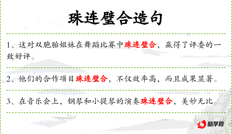 6. 【珠连璧合】 指日月、五星同时出现于天的一方。亦泛指日月五星普照天下。