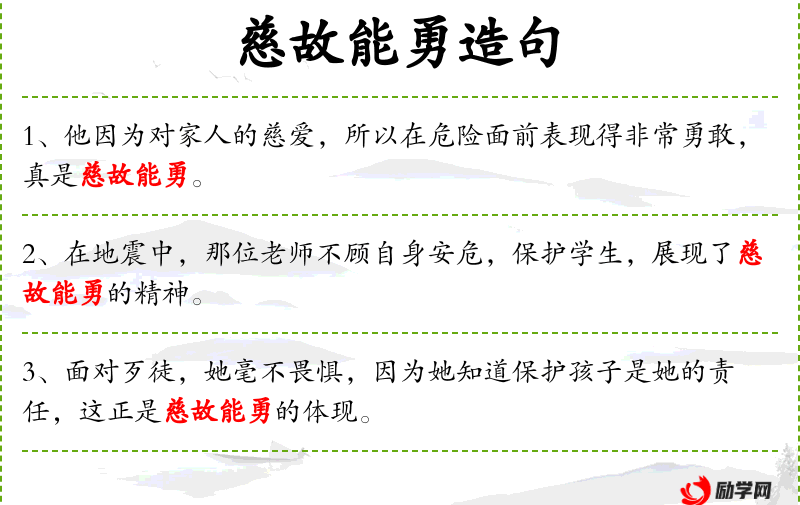 - 慈故能勇:成语,源自《论语》,意为因为慈悲所以能勇敢。