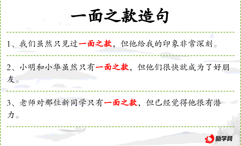 - 一面之款:这个成语在**文化中常用来形容人与人之间的初次见面,强调了第一印象的重要性。