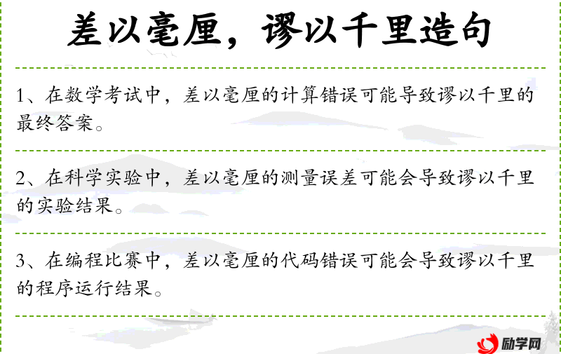 句子:“在数学考试中,差以毫厘的计算错误可能导致谬以千里的最终答案。”