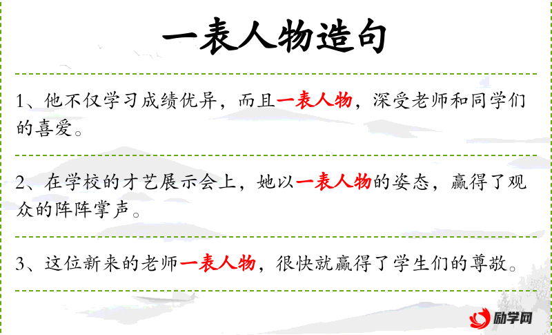 1. 【一表人物】 形容容貌英俊。表,仪表。