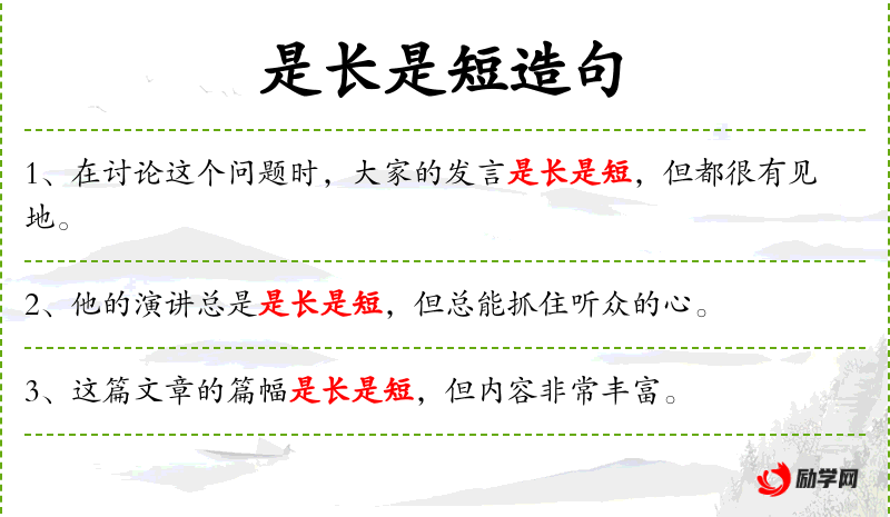 1. 【是长是短】 - 指说长道短。
