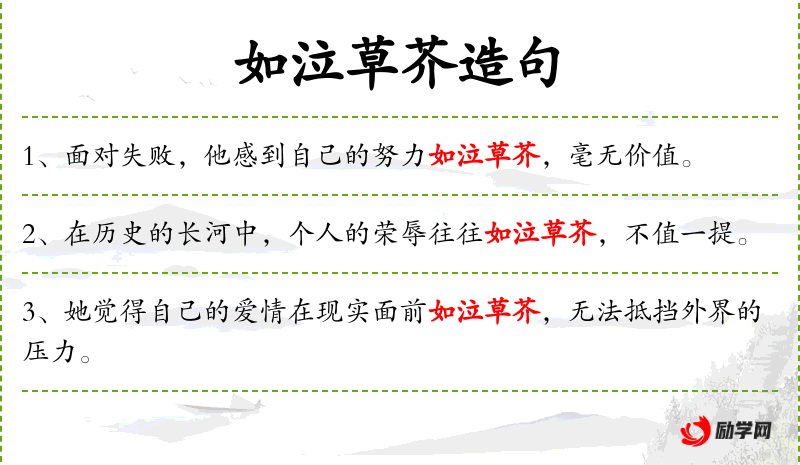 - 文化意义:“如泣草芥”这个成语反映了中文文化中对悲惨处境的比喻。