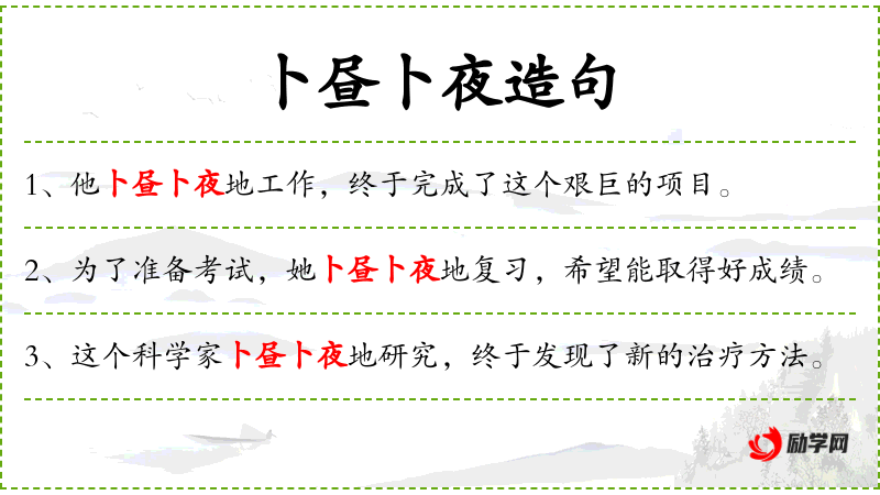 - 卜昼卜夜:这个成语体现了**文化中对勤奋和不懈努力的重视。